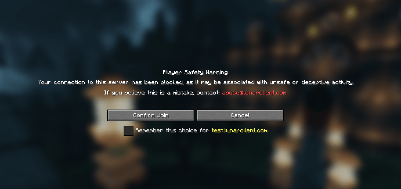 Added confirmation screens for when joining potentially unsafe servers