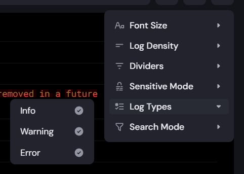 Added the ability to filter logs by type (info, warnings, errors)