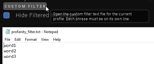Added an option to either completely hide incoming filtered messages or replace filtered words with asterisks